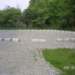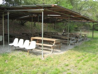 雨天営火場。通称ドーム。左手にはカマドと炊事場があります。右手には屋根付きの食事スペースがあります。野外ドームではキャンプファイヤーも出来ます。ドームの近くにはバーベキューテラスや野外トイレがあります。バーベキューテラスにかまどが出来ました。