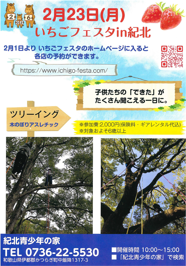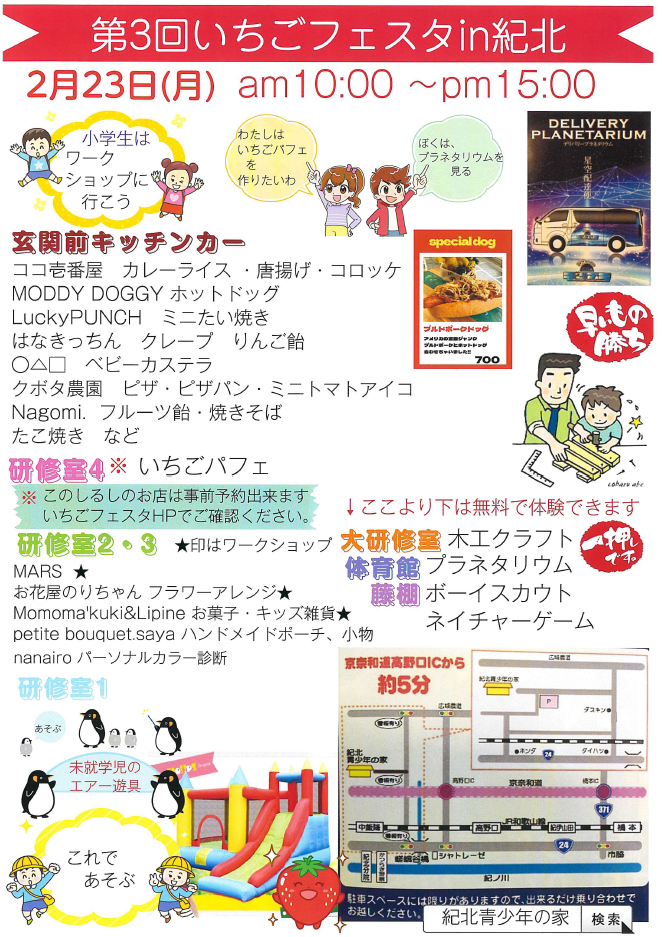 令和8年2月23日月曜日に開催される「いちごフェスタin紀北」のチラシが出来上がりましたので掲載いたします。